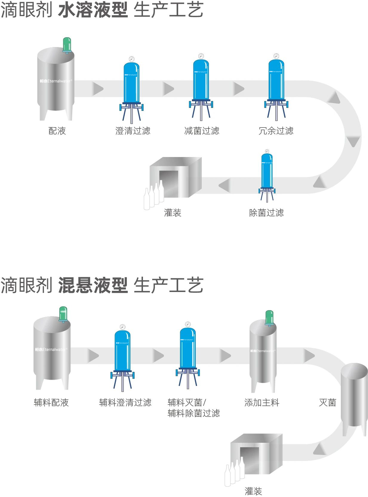 《中國藥典》2020年版通則0105眼用制劑中描述“滴眼劑系指由原料藥物與適宜輔料制成的供滴入眼內(nèi)的無菌液體制劑”。在滴眼劑的生產(chǎn)過程中需要將注射用水與藥物混合,然后制成滴眼劑進(jìn)行成品灌裝,分為澄明溶液、混懸液或乳狀液;也可將藥物以粉末、顆粒等形式包裝,另備溶劑,在臨用前配成澄明溶液或混懸液。