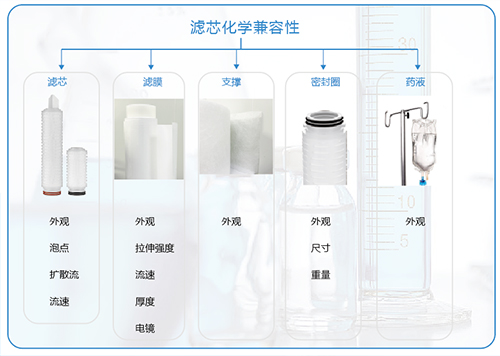 在不同操作條件及工藝流程下,有可能對所使用的濾膜或過濾器有不同程度的影響,通過測定濾膜或過濾器的物理化學穩(wěn)定性,如泡點,膜厚度,流速等參數(shù)變化,以準確評估濾膜或過濾器對特定工藝流體的相容性。