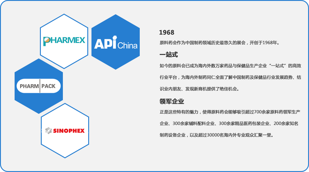 原料藥會(huì)作為中國(guó)制藥領(lǐng)域歷史最悠久的展會(huì),開創(chuàng)于1968年。